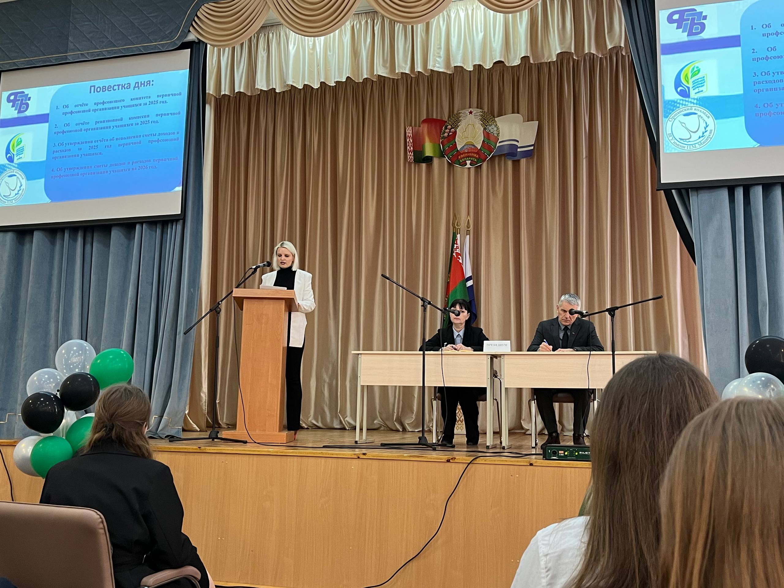15.02.2024г. в первичной профсоюзной организации учащихся Оршанского колледжа ВГУ имени П.М.Машерова состоялась отчётно-выборная конференция. В работе конференции принимали участие приглашенные: заместитель председателя Витебской областной организации Белорусского профессионального союза работников образования и науки – Аникеев Сергей Иванович, председатель Оршанского районного объединения профсоюзов – Пустошило Оксана Владимировна.