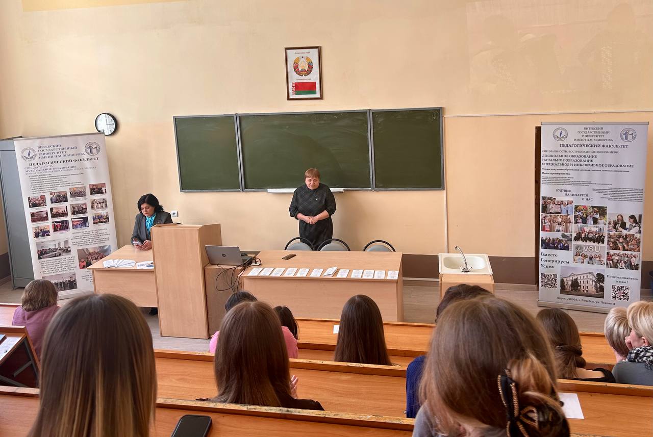 Главной целью визита, безусловно, было получение конкретной информации о поступлении. Для учащихся выпускных групп специальностей «Начальное образование» и «Дошкольное образование» были организованы встречи с деканами факультетов, которые доступно рассказали об особенностях приемной кампании 2026 года, сроках подачи документов и преимуществах обучения по выбранным профилям. Будущие абитуриенты получили исчерпывающие ответы на все волнующие вопросы.