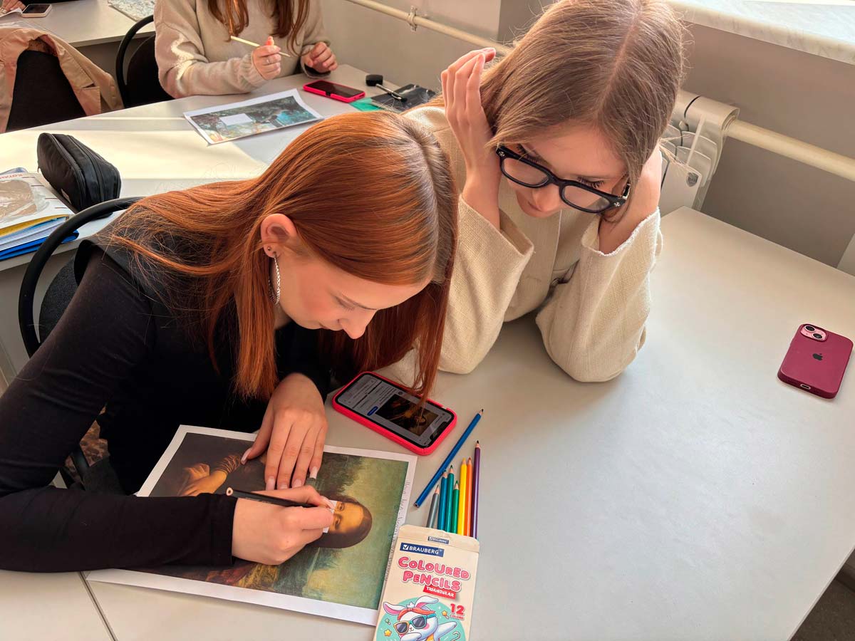 Другая часть наших выпускников выбрала площадку эстетического искусства. Там царила творческая атмосфера: каждому выдали недописанную картину в стиле известного художника. Задача заключалась в том, чтобы дорисовать её, чувствуя стиль и настроение мастера.