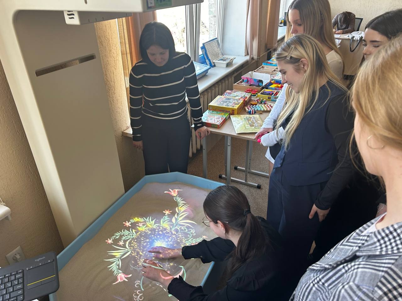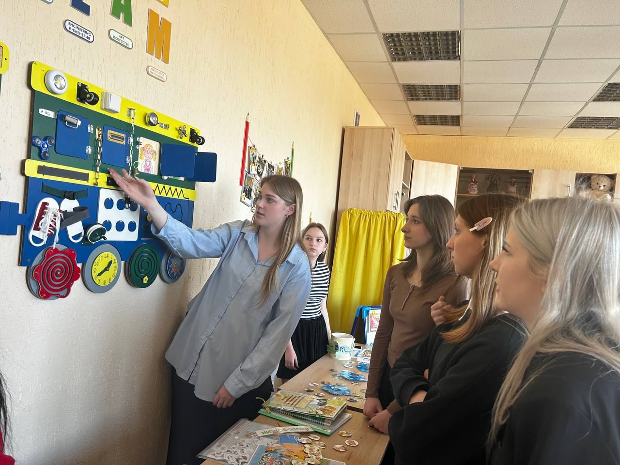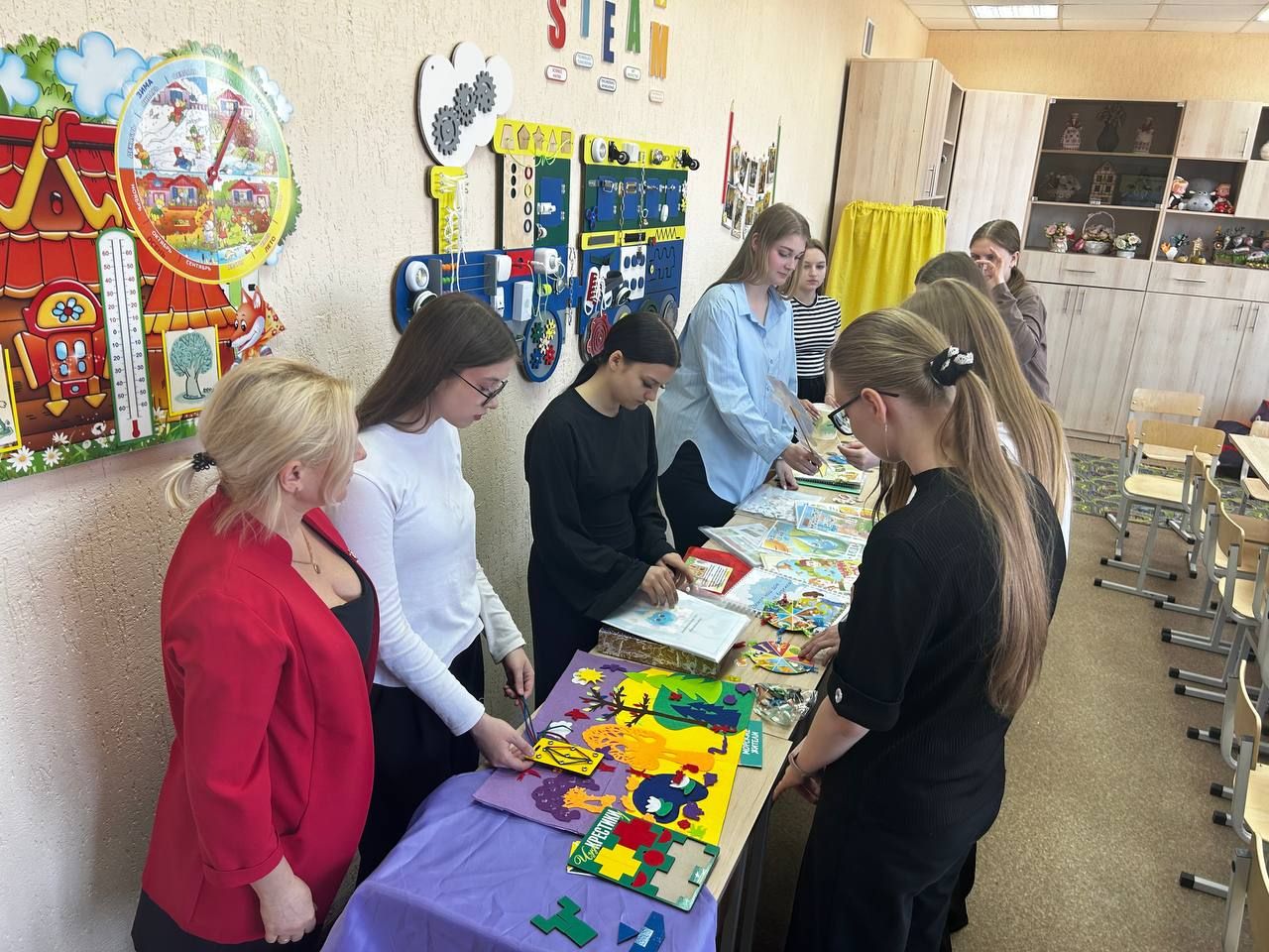В аудитории развернулась красочная выставка «Учим, играя», где были представлены современные дидактические пособия, разработанные как преподавателями, так и самими обучающимися. Экспонаты выставки — от многофункциональных сенсорных коробок до развивающих лэпбуков и интерактивных панелей — наглядно демонстрировали, как можно превратить обучение в увлекательное приключение. Каждое пособие решало конкретные педагогические задачи: развитие мелкой моторики, логического мышления, речи, математических представлений и эмоционального интеллекта у дошкольников.